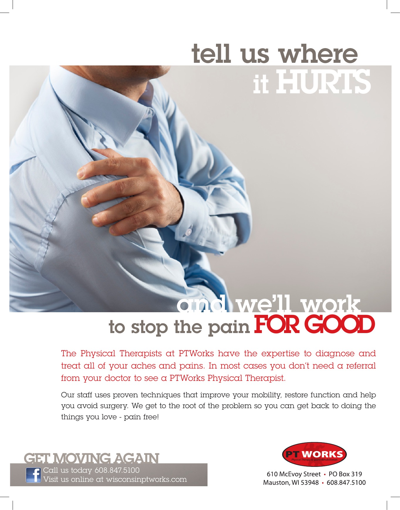 This physical therapist needed a mailer that made potential patients realize that pain was playing too big of a role in their lives — but they didn’t have to live that way. The front cover made no bones about it, this piece was all about pain and what to do next. Message received. Website traffic went up. Office visits went through the roof. And a whole bunch of new patients started to live life pain-free.